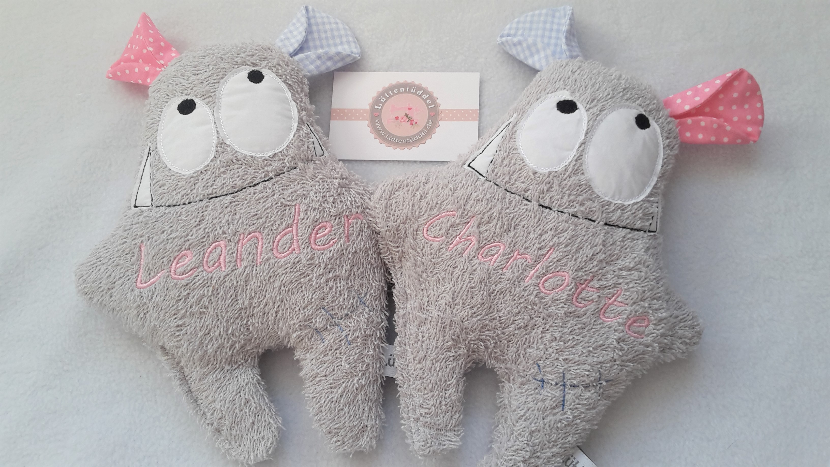 ♥ zauberhaftes liebes Monster Körnerkissen Wärmekissen Lavendel Name Taufe Geburt Einschulung Kindergarten von Lüttentüddel