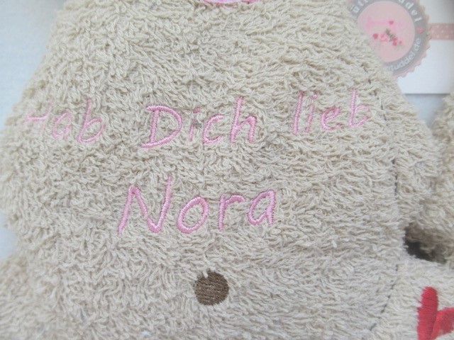 Gern kann gegen einen geringen Aufpreis von 3,50€ ein Name, (Doppelname 4,50€) aufgestickt werden.