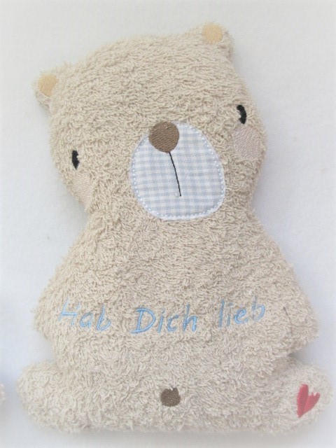 Das Körnerkissen besteht aus Frotteestoff und wurde gefüllt mit