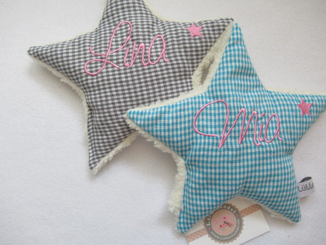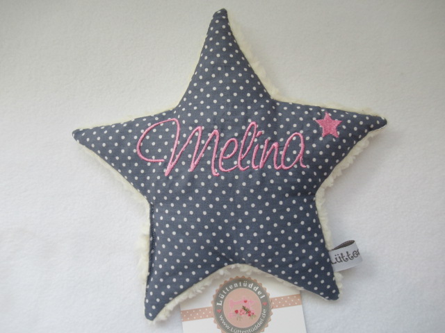 Stern Punkte Körnerkissen Wärmekissen Dinkel Wunschfarbe Name von Lüttentüddel