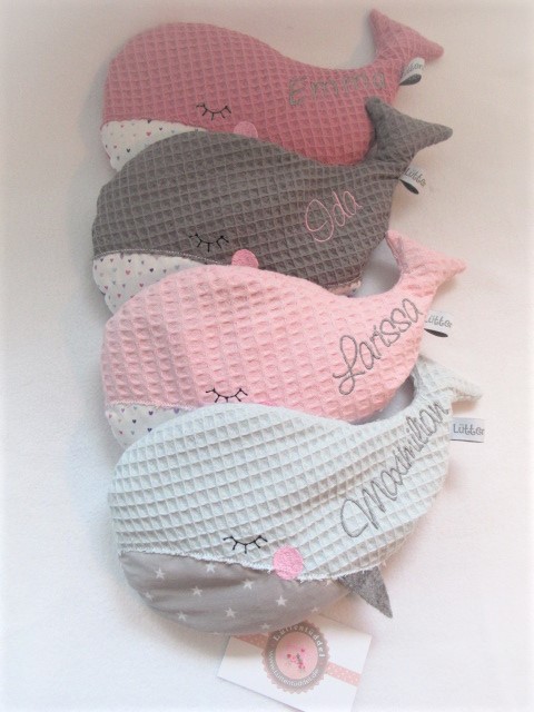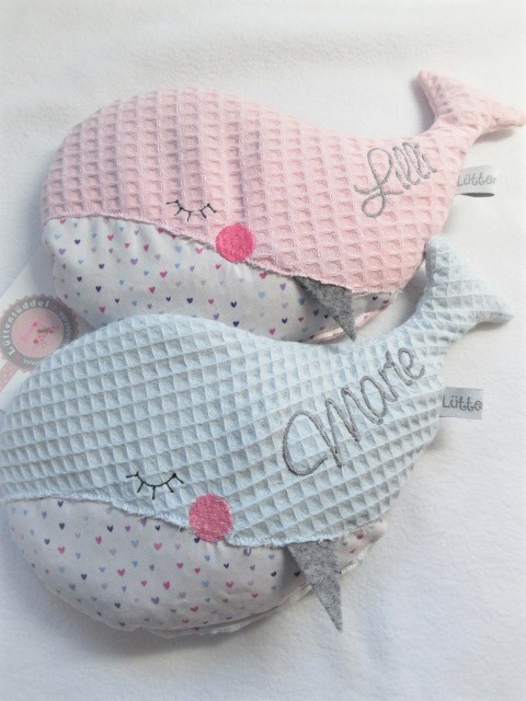 zuckersüßer Wal, Wunschname, Geschenk, Taufe, Geburt, Kuschelwal, Kissen, Körnerkissen Dinkelkissen, Bio Dinkel Lavendel, von Lüttentüddel