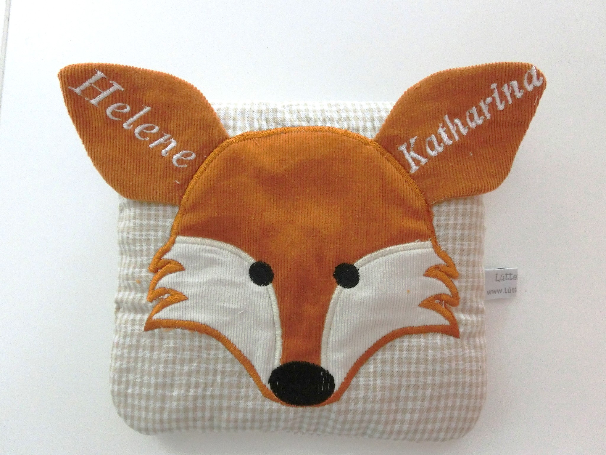 Mobile Preview: Tiere Name Wunschname Körnerkissen Wärmekissen Dinkelkissen Lavendel Stickerei von Lüttentüddel