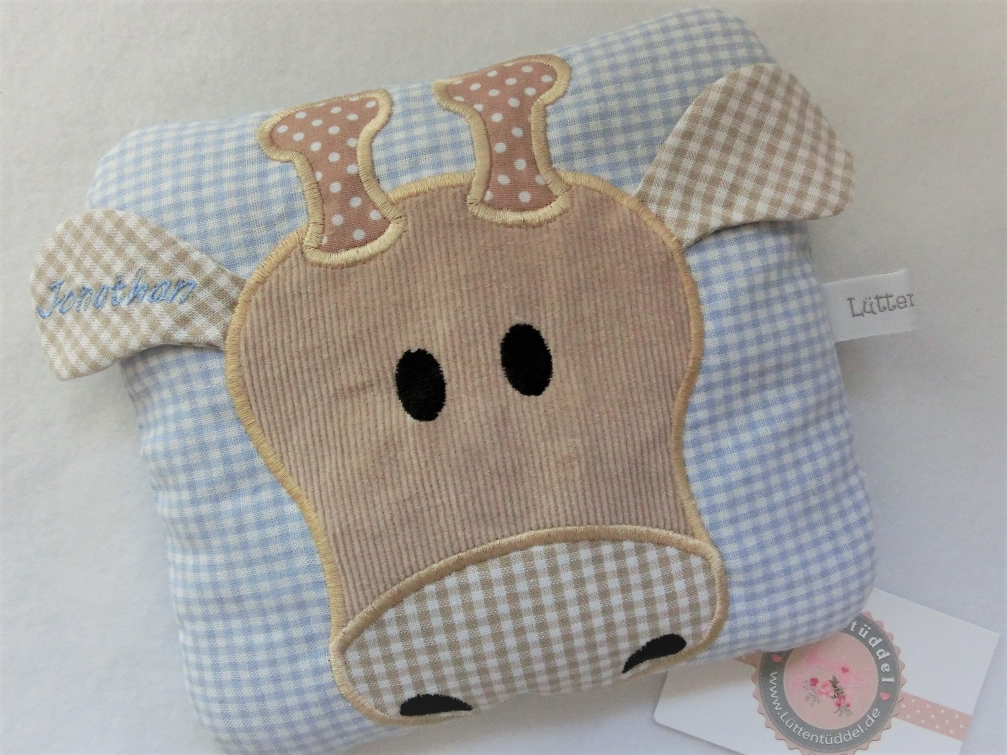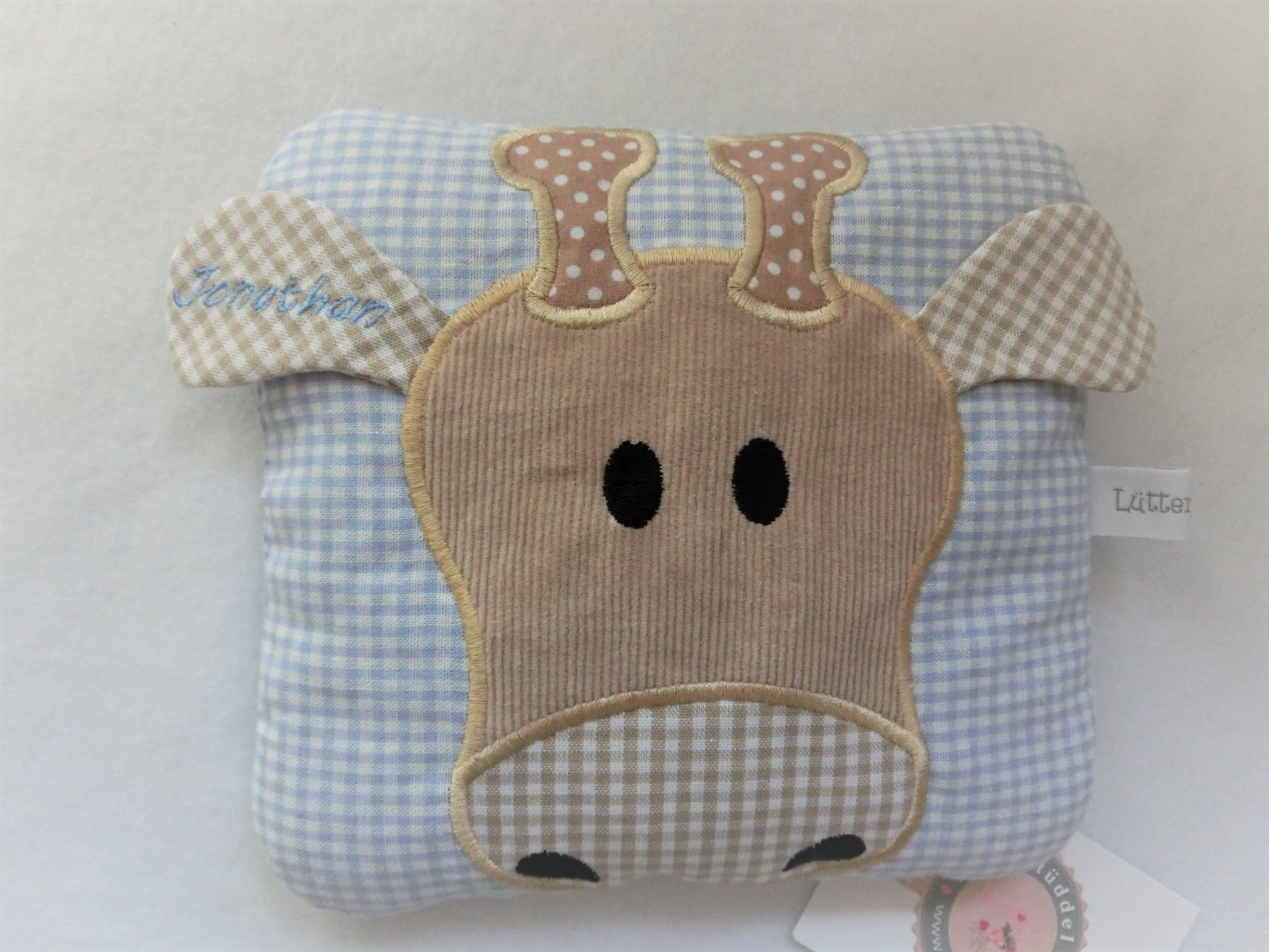 Tiere Name Wunschname Körnerkissen Wärmekissen Dinkelkissen Lavendel Stickerei von Lüttentüddel