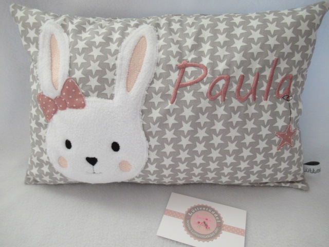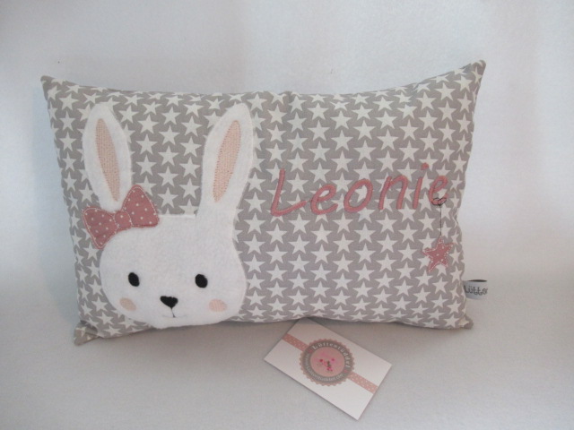 ★ 35x23 cm Kissen ★ Geburt Hase Mädchen Name ★ von Lüttentüddel ★ Einschulung Kindergarten Taufe