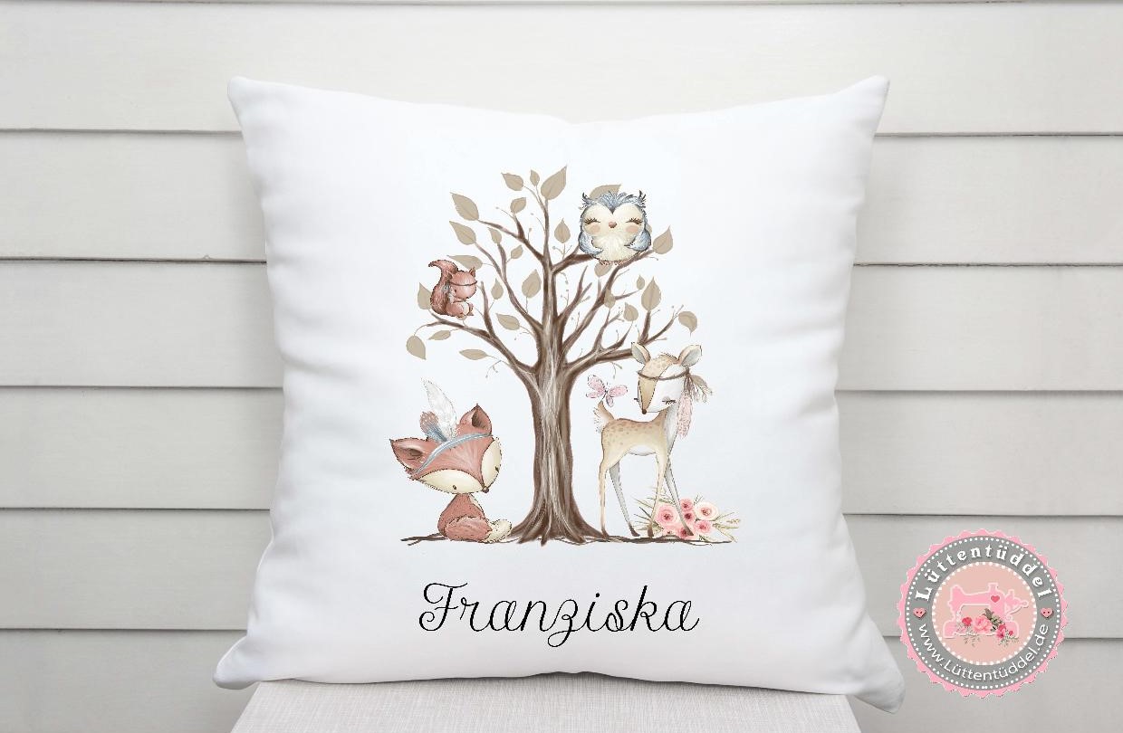 Waldfreunde Kissen mit Namen Wunschname KITA Einschulung Geburtstag Geburt Taufe Geburtskissen von Lüttentüddel®