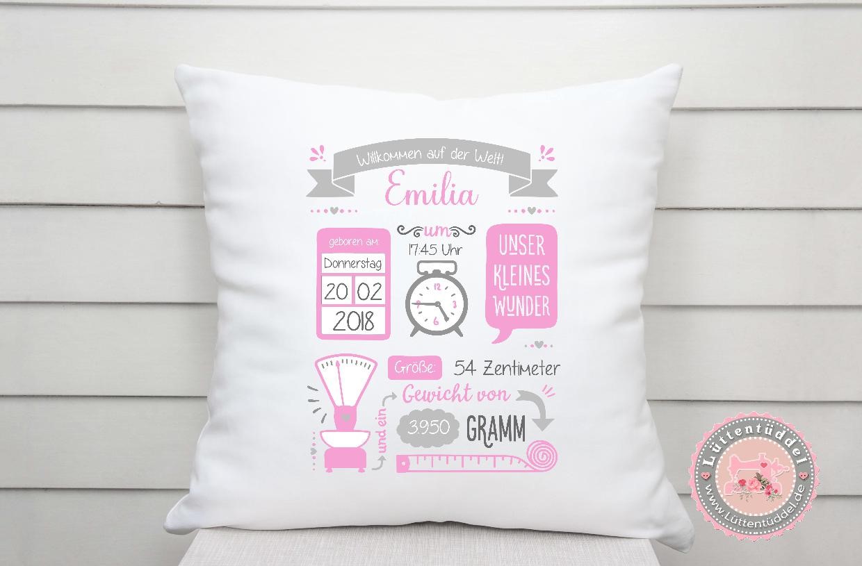 ♥ Kissen mit Namen und Geburtsdaten ★ von Lüttentüddel® ♥ Wunschname KITA Einschulung Geburtstag Geburt Taufe Geburtskissen