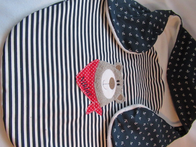 Die Vorderseite ist aus Baumwollstoff und für die Rückseite kann gegen Aufpreis von 3,00€ Teddyfell, Fleece oder Frottee verwendet werden.