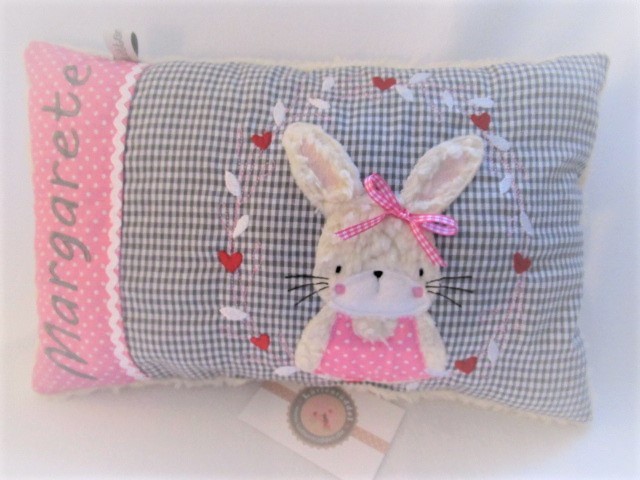 Preview: ★ 35x23 cm Kissen Geburt Einschulung Kita Taufe Hase  Mädchen Name ★ von Lüttentüddel