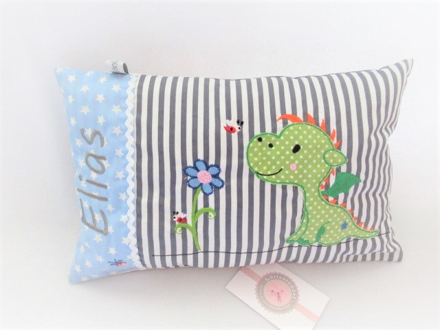 ★ ca. 35x25 cm Kissen kleiner süßer Drache Wunschname Geburt Taufe Einschulung Reisekissen ★ von Lüttentüddel