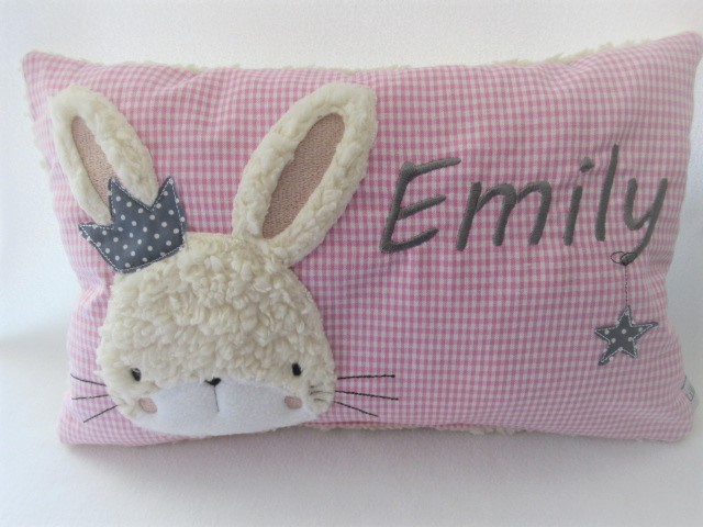 Mobile Preview: ★ 35x23 cm Kissen Geburt Hase Krone Mädchen Name ★ von Lüttentüddel