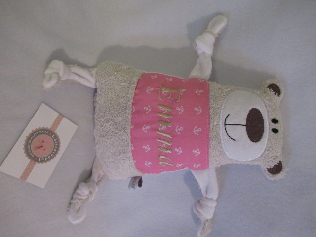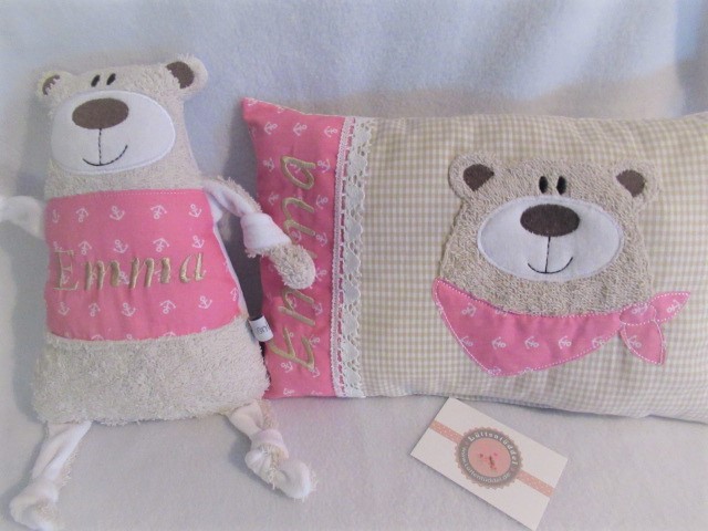 ★ 35x23 cm Kissen Anker Geburt Einschulung Schmusekissen Kita ... Bär Halstuch Name ★ von Lüttentüddel