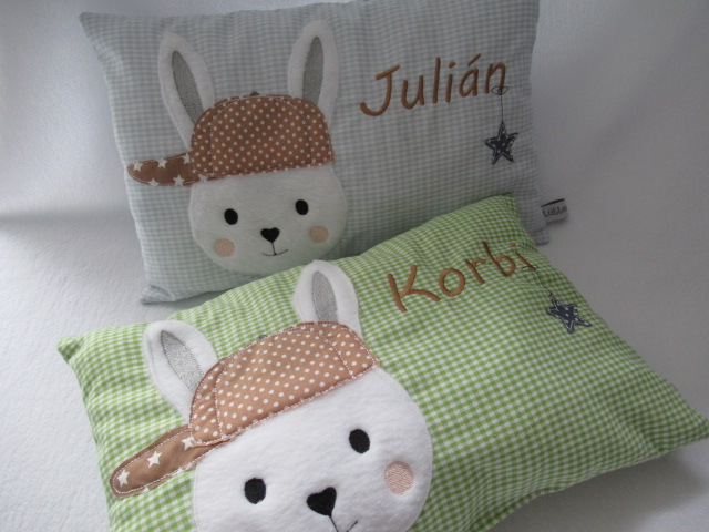 ★ 35x23 cm Kissen Geburt Hase Junge Name Taufe Wunschname Einschulung KITA Kissen to go... ★ von Lüttentüddel