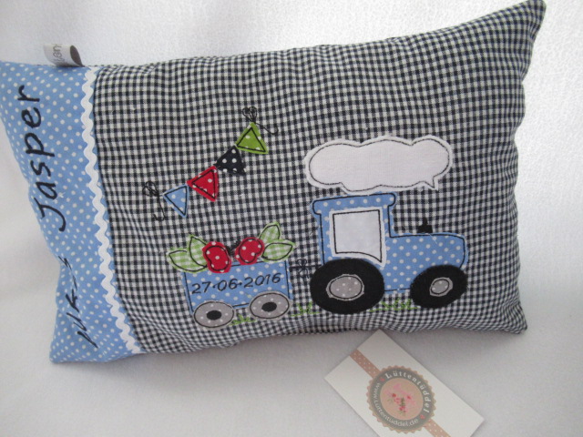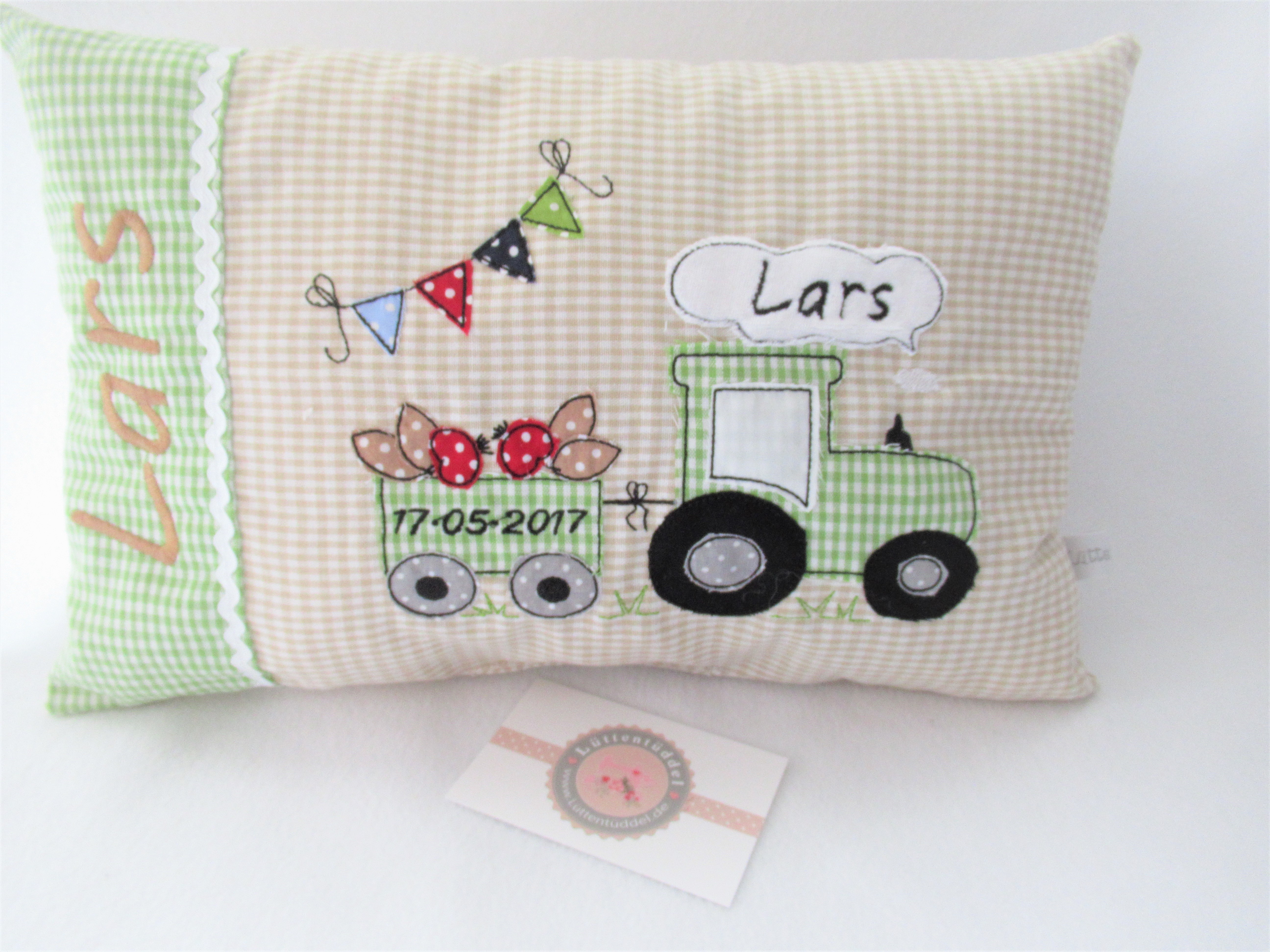 Preview: ★ 35x23 cm Kissen Geburt Traktor Trecker Name ★ von Lüttentüddel