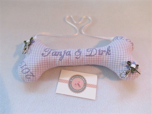 Preview: ♥ Zauberhaftes Ringkissen Knochen Wunschname Stickerei Hochzeit Standesamt  Hochzeitsknochen Just Married von LüttentüddelI