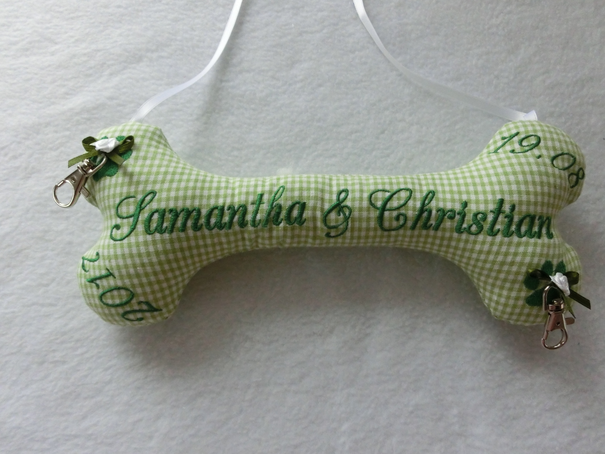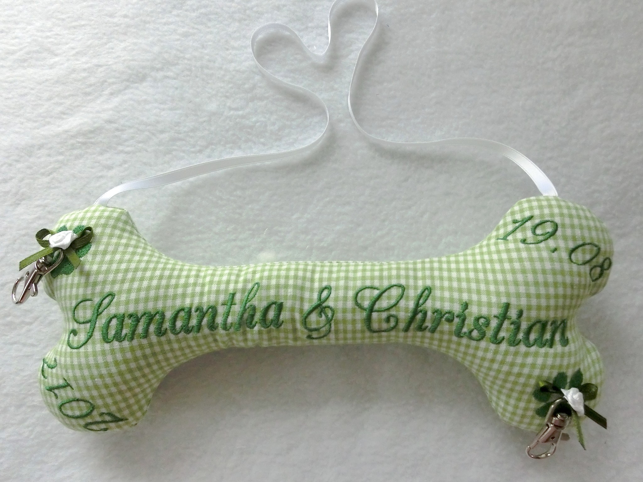 ♥ Zauberhaftes Ringkissen Knochen Wunschname Stickerei Hochzeit Hochzeitsknochen Just Married von LüttentüddelI Do