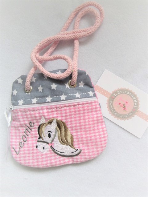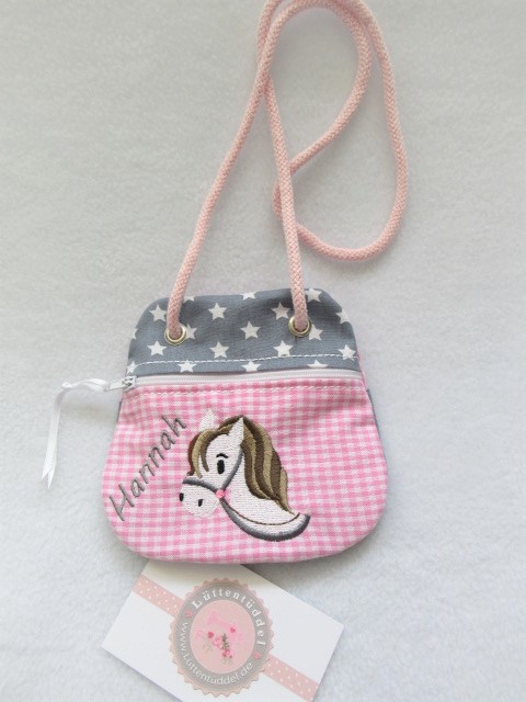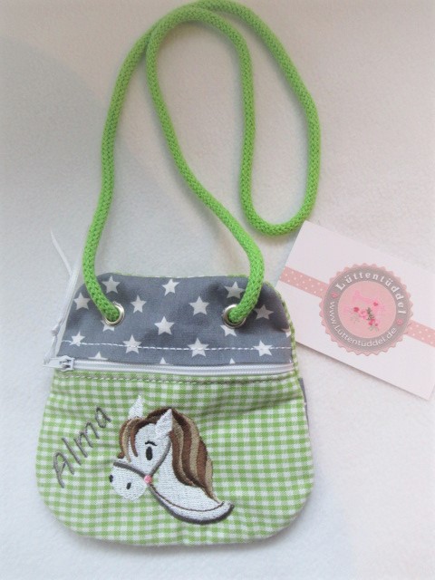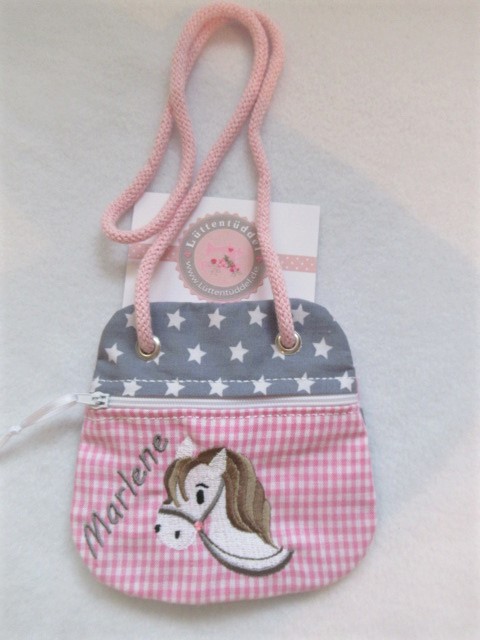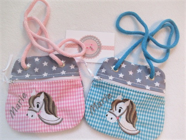 ★ Brustbeutel Pferd Wunschname ★ Einschulung Badeanstalt Kita Schule Viele Farben und Muster von Lüttentüddel
