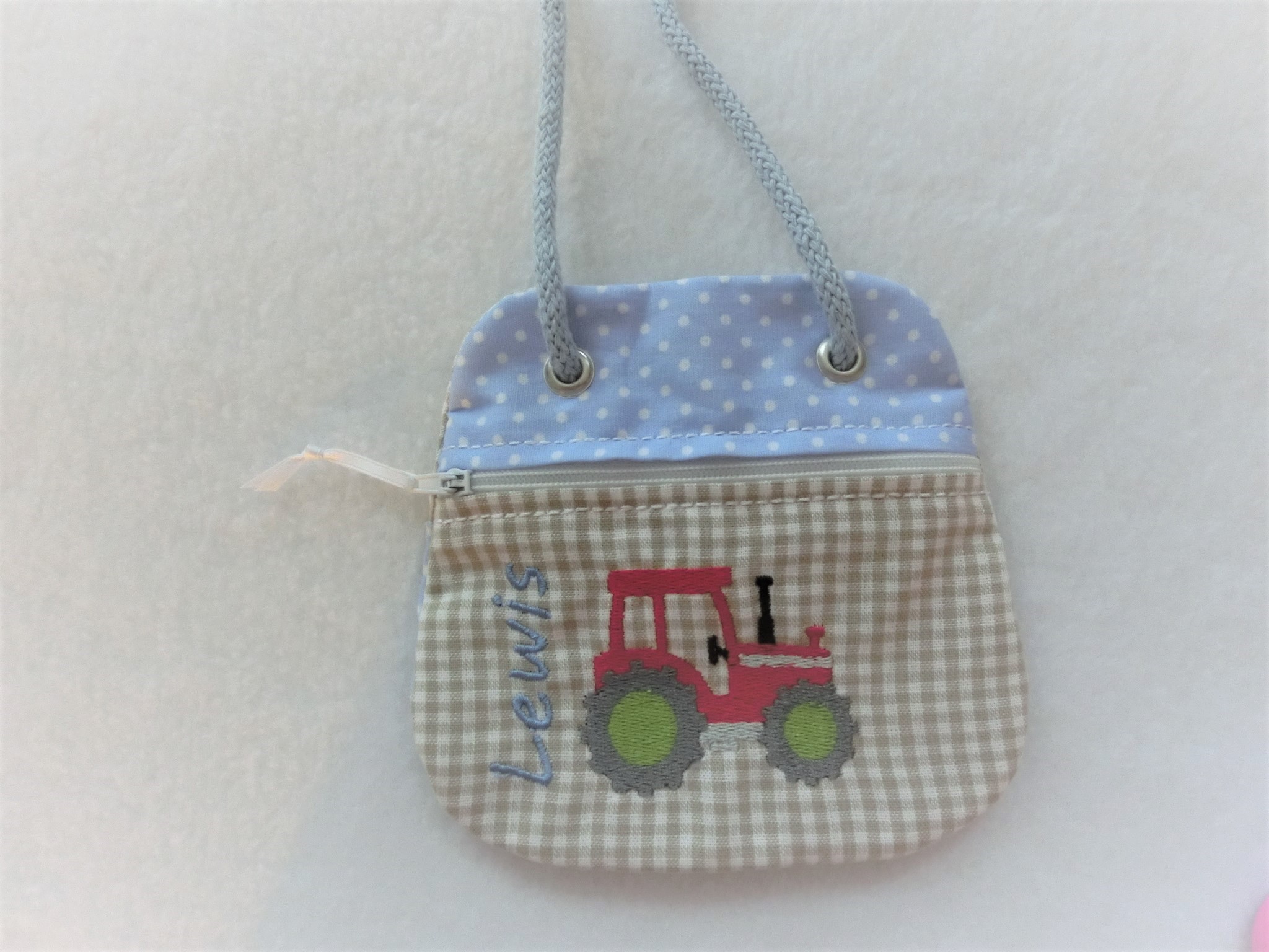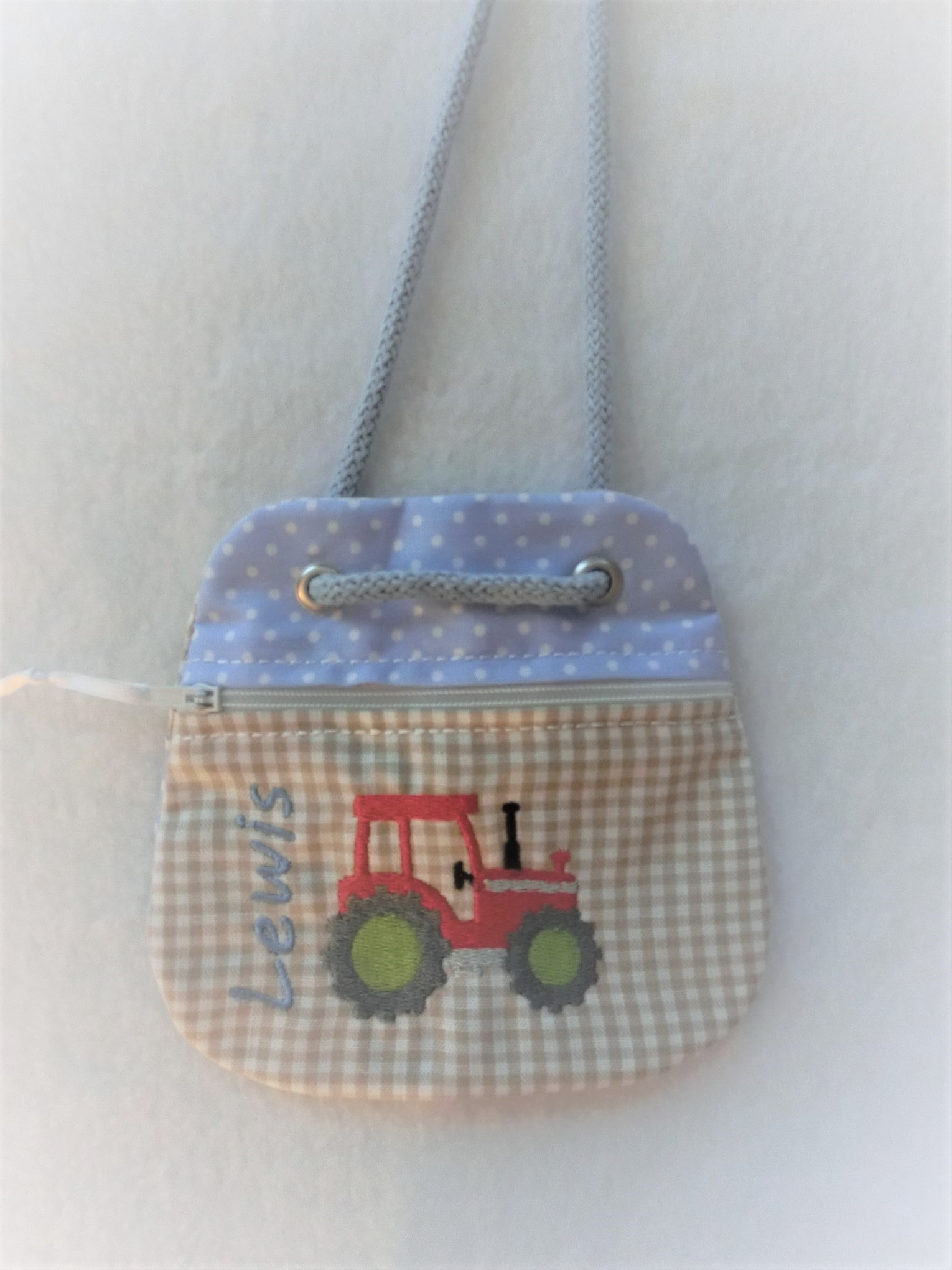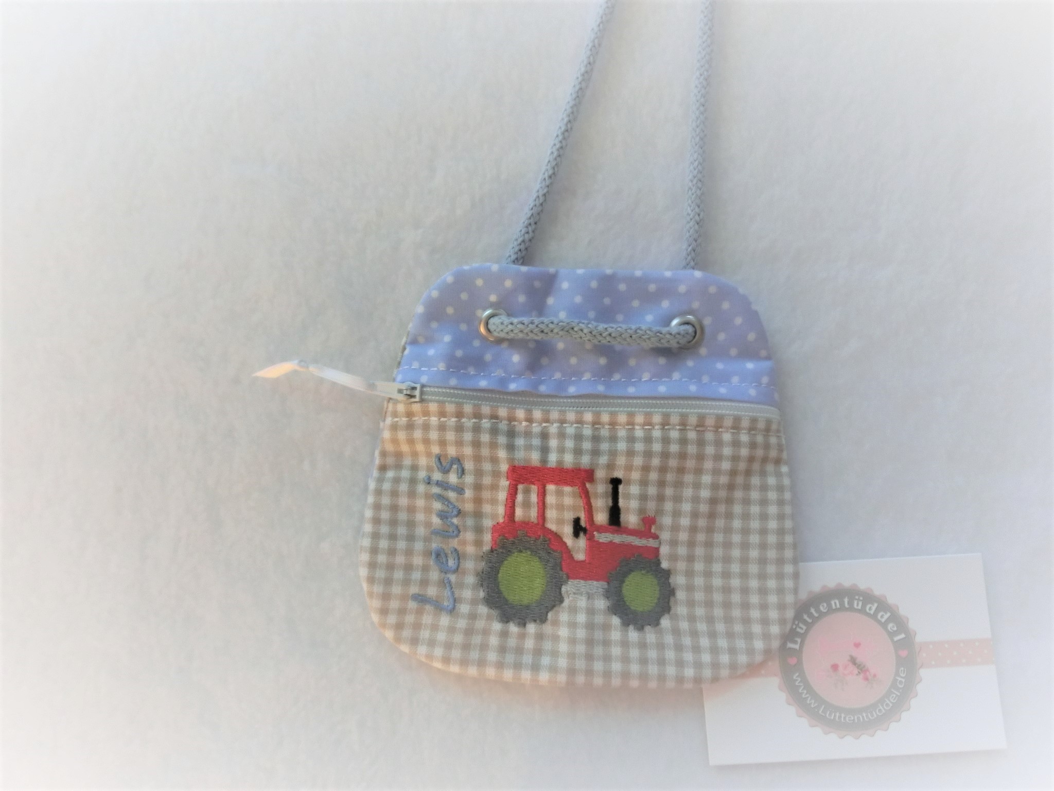 ★ Brustbeutel Traktor Trecker Name ★ Einschulung Badeanstalt Kita Schule Viele Farben und Muster von Lüttentüddel