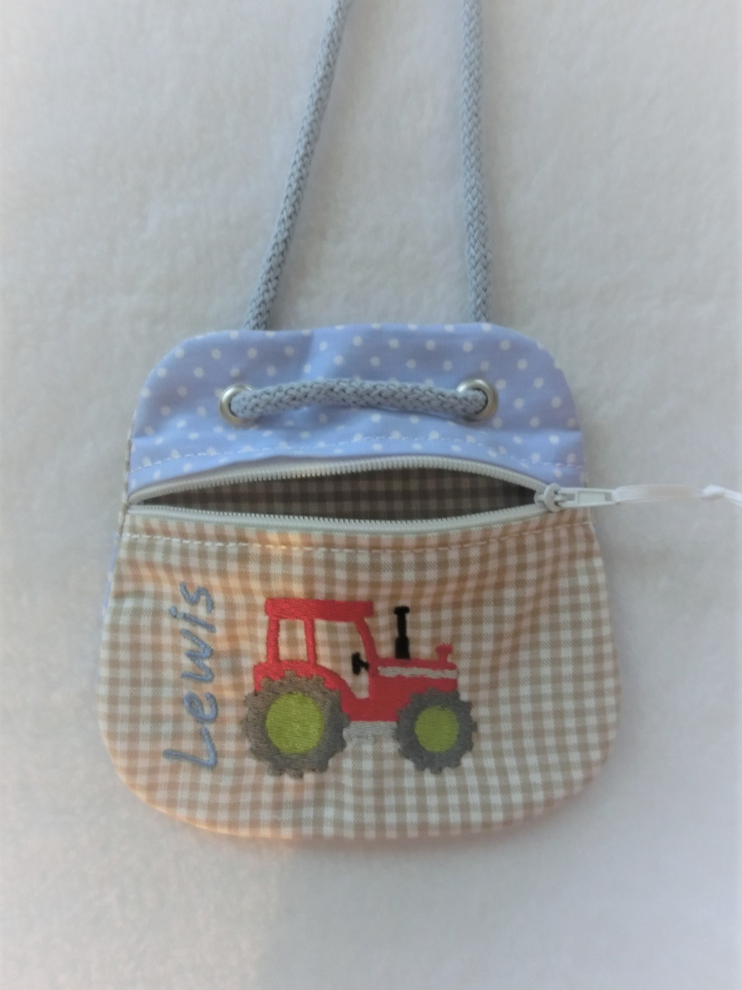 Preview: ★ Brustbeutel Traktor Trecker Name ★ Einschulung Badeanstalt Kita Schule Viele Farben und Muster von Lüttentüddel