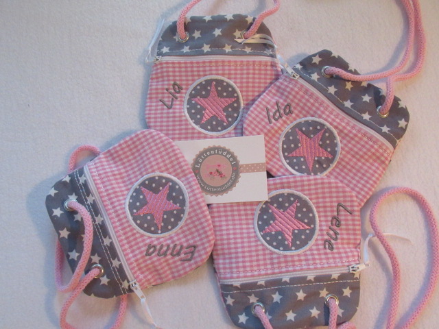 Preview: ★ Brustbeutel Stern Name ★ Kita Schule Viele Farben und Muster von Lüttentüddel