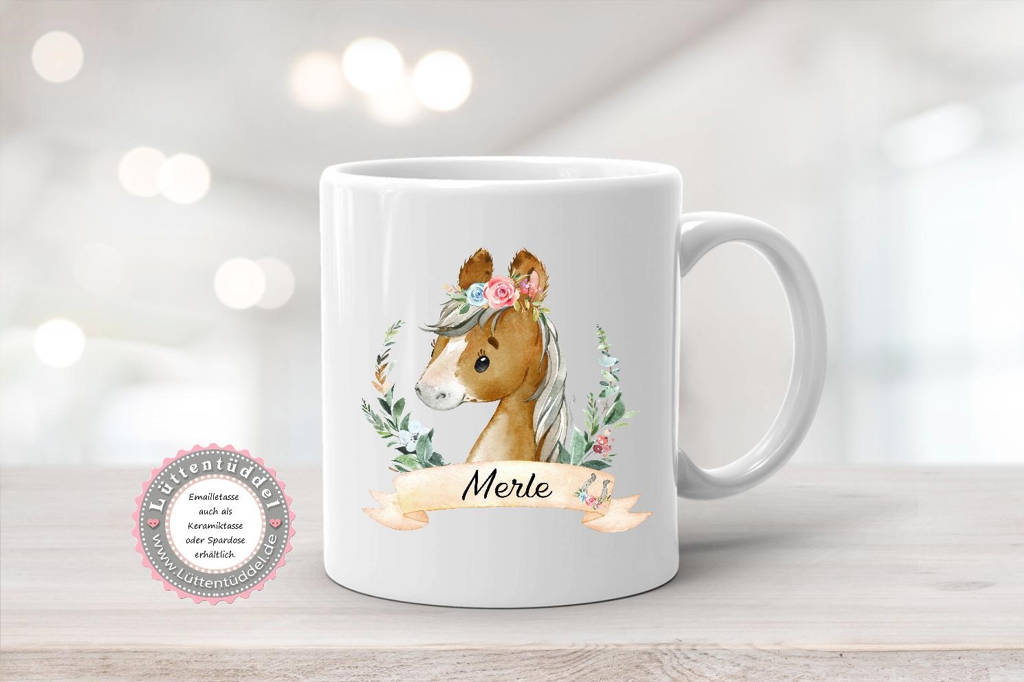 Becher Tasse Emaillebecher zauberhafte Tasse Emailletasse Fohlen Einschulung Schulkind KITA Wunschname Geburtstag Becher Lüttentüddel