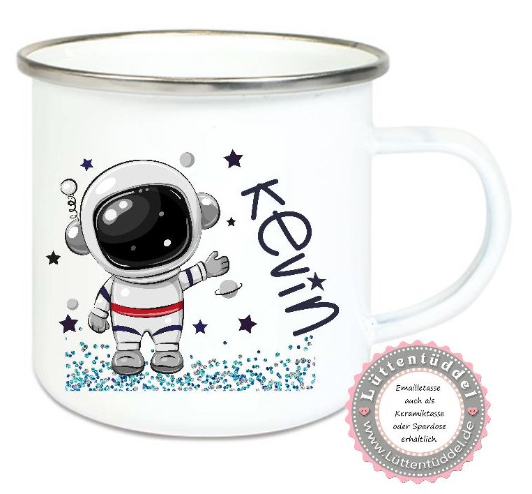♥ zauberhafte Tasse Emailletasse Becher Astronaut, Name, Wunschname, Sterne KITA Kindergarten, Geburtstag, Einschulung, Kindergeburtstag, Dankeschön, Abschied, Jubiläum, Geschenk, Becher von Lüttentüddel - Kopie