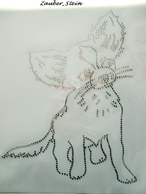 6. Ziehe Sie die Transferfolie vorsichtig ab, sollten Steinchen noch nicht verklebt sein, bitte Bügelvorgang wiederholen!