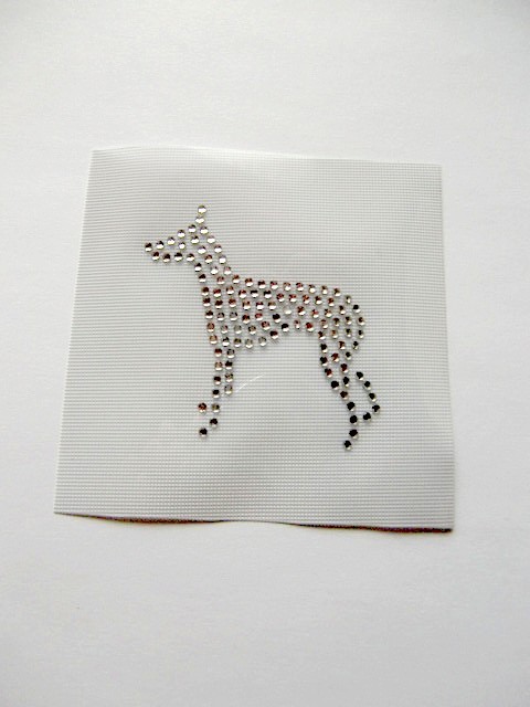6. Ziehe Sie die Transferfolie vorsichtig ab, sollten Steinchen noch nicht verklebt sein, bitte Bügelvorgang wiederholen!