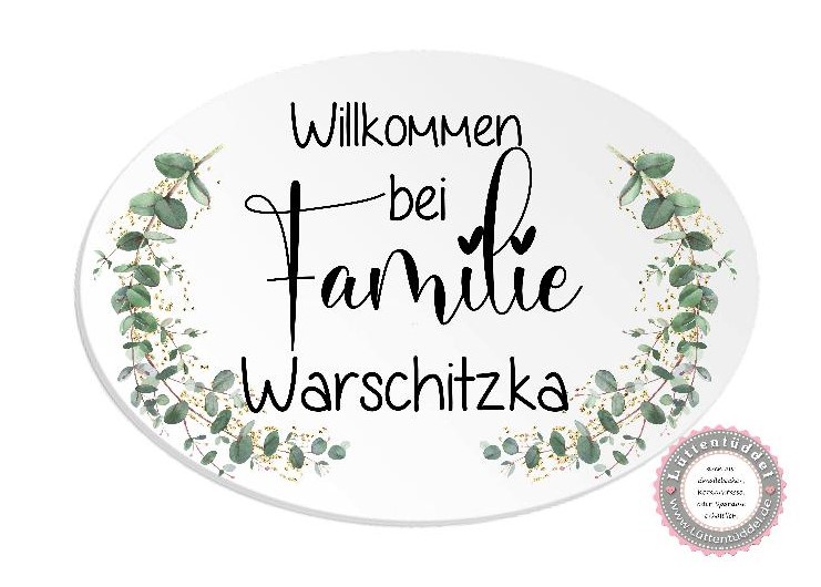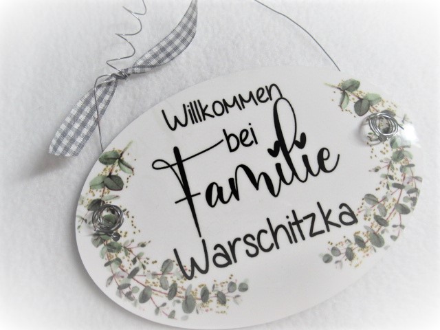 zauberhaftes ovales Türschild Eukalyptus und Wunschname - zur Einweihung, Richtfest, Einzug Geburtstag vonLüttentüddel®
