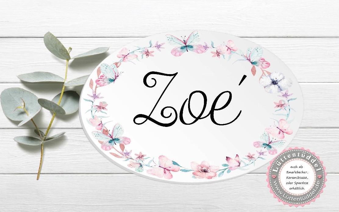 zauberhaftes ovales Türschild Schmetterlinge mit Wunschname - Kinderzimmer, zur Einschulung, Geburtstag, Taufe, Lüttentüddel®