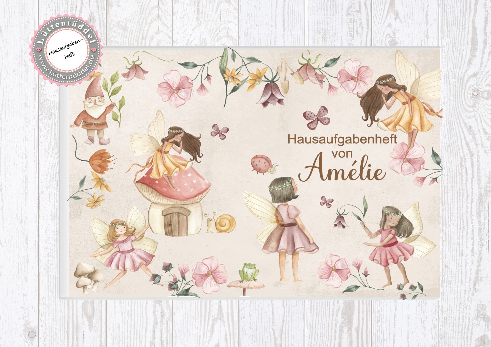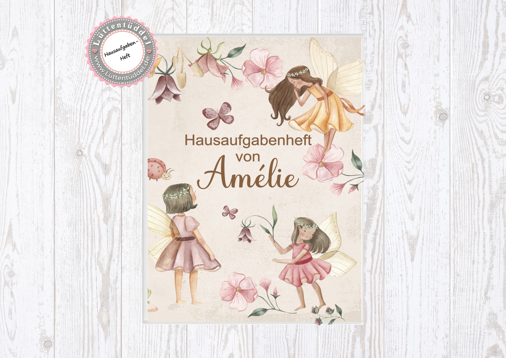 zuckersüßer Schulheft Umschlag Elfen Feen  Hausaufgabenheft in seperater Hochwertiger Hülle Lüttentüddel®