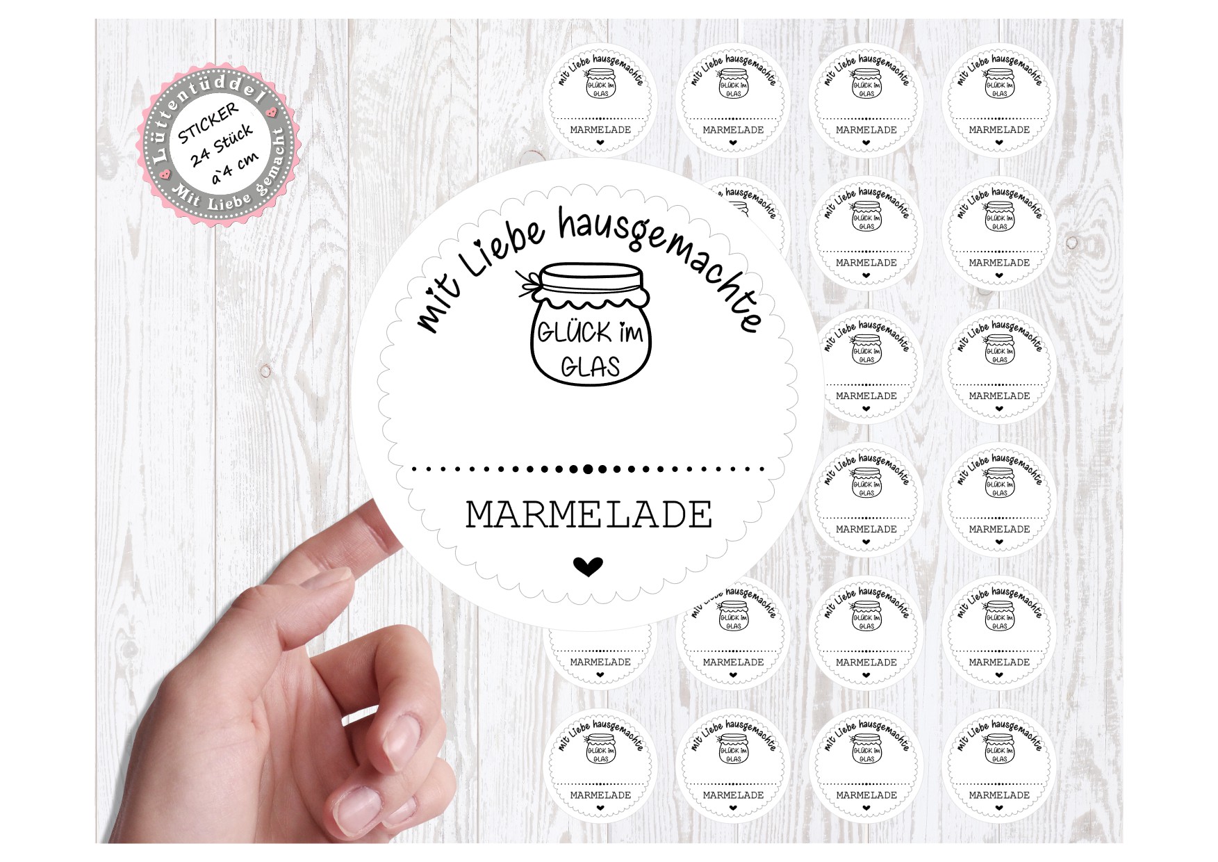 24 zuckersüßer Sticker Aufkleber 4cm zum selbstbeschriften Marmelade  Glück im Glas  von Lüttentüddel® -