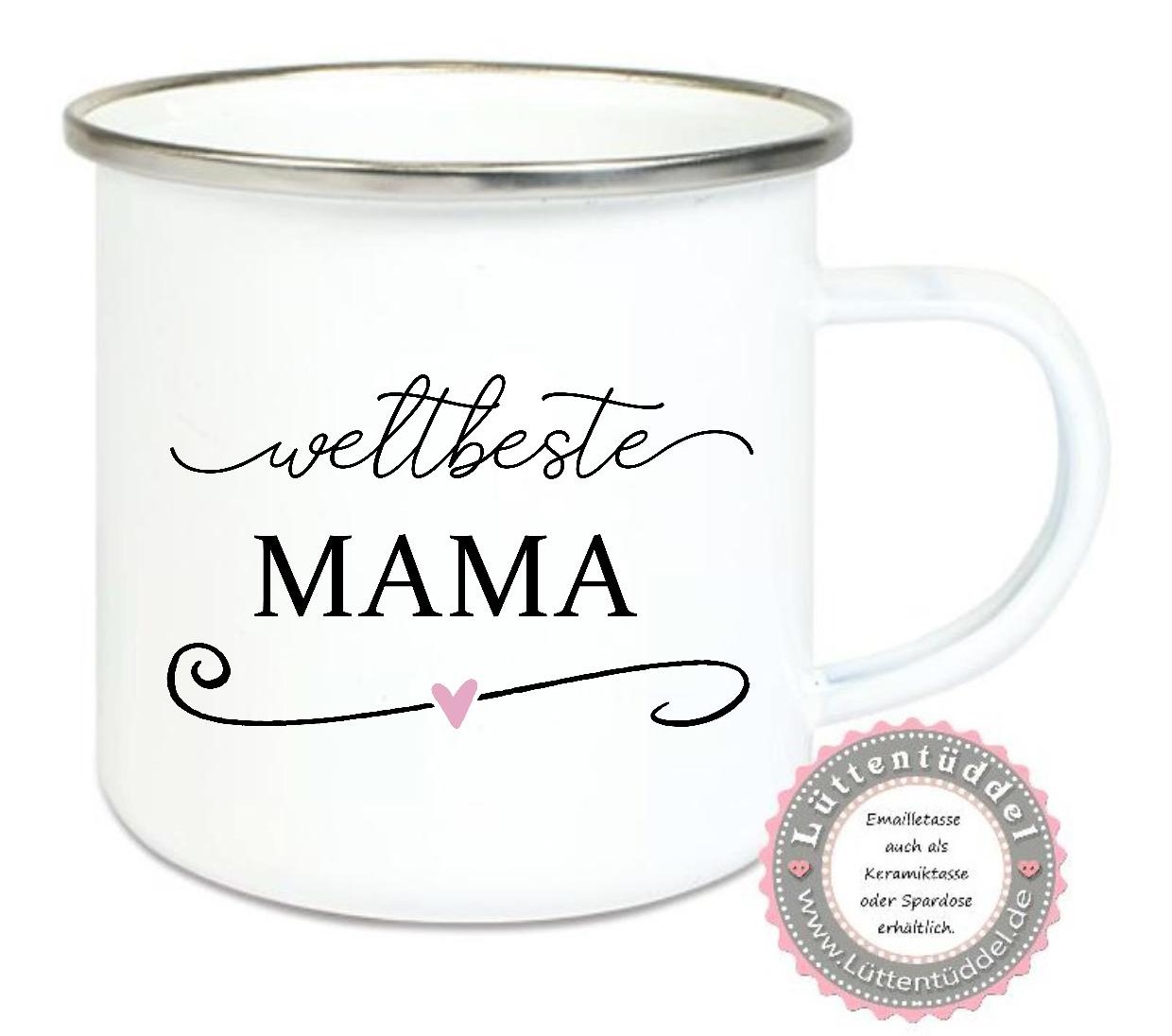 Blumentopf Tasse Emailletasse Weltbeste Mama Muttertag, Vatertag Dankeschön, Abschied, Jubiläum, Geschenk, Becher von Lüttentüddel