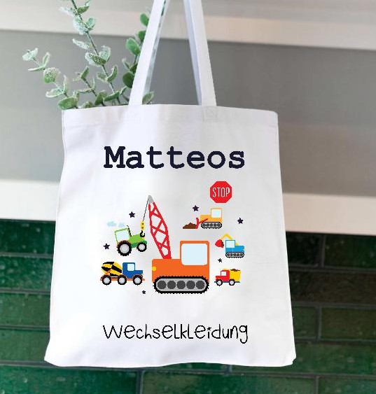 Baustellenfahrzeuge Tasche Wechselwäsche Wechselkleidung Name für Kindergarten Wunschname KITA Kindergarten Einschulung Lüttentüddel®