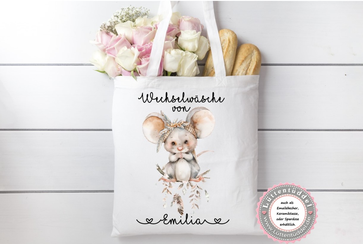 zuckersüße Tasche Indianer Maus Boho 2 Wechselwäsche WechselkleidungWunschname für KITA Geschenk Kindergarten Einschulung von Lüttentüddel®