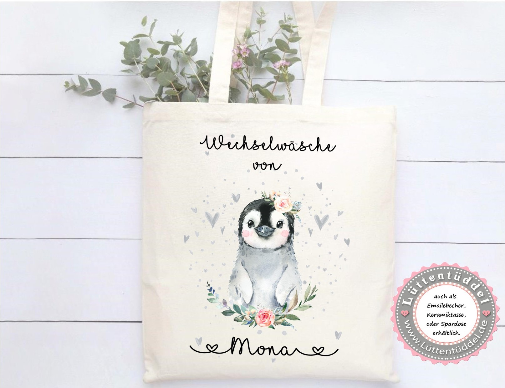 süße Tasche Pinguin Wechselwäsche Wechselkleidung (personalisiert) für Kindergarten Wunschname KITA Kindergarten Einschulung Lüttentüddel®