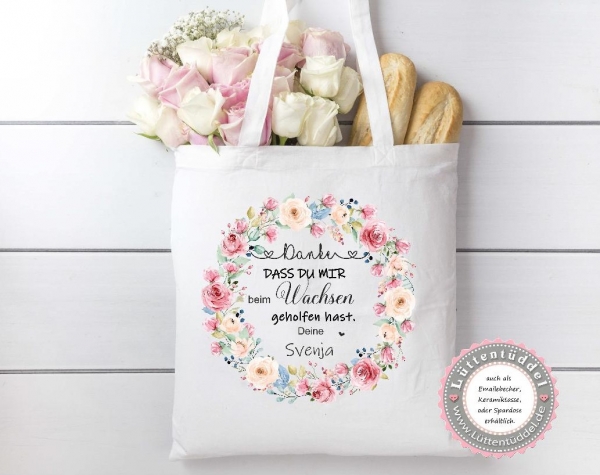 Tasche Rosenkranz Danke dass Du mir... Erzieherin KITA Abschied Einschulung Einkaufstasche Bag Wunschname von Lüttentüddel®