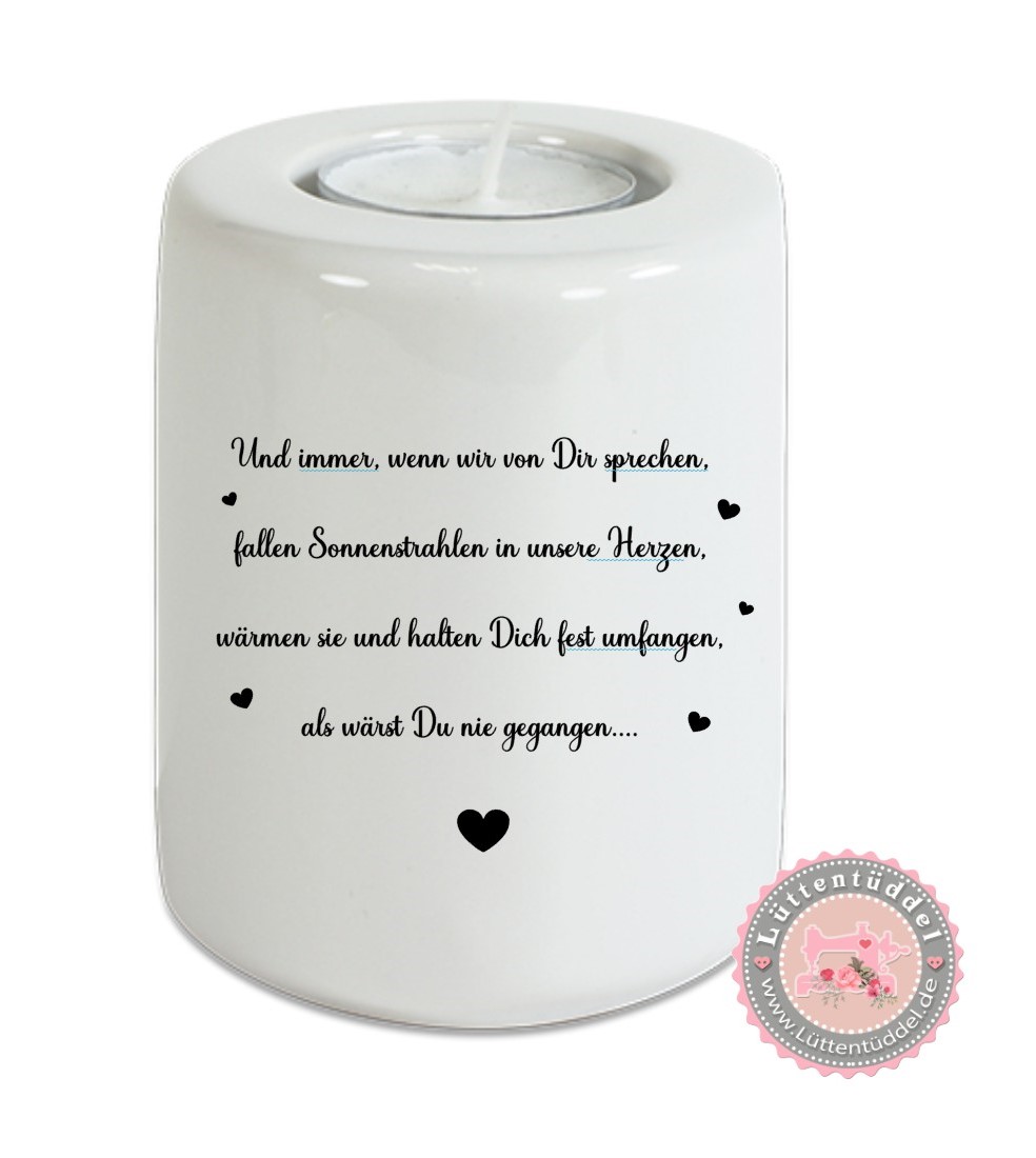 Trauer Trauerlicht Erinnerungslicht Gedenklicht Spruch Teelichthalter Teelicht Kerze Kerzenlicht Grablicht Kerze Allerheiligen Sternenkind Lüttentüddel®