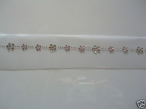 Blüten Bordüre m Rosa Ornament Strass HOTFIX HOTGLUE Bügelbild Applikation