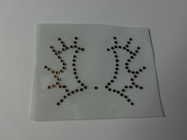 6. Ziehe Sie die Transferfolie vorsichtig ab, sollten Steinchen noch nicht verklebt sein, bitte Bügelvorgang wiederholen!