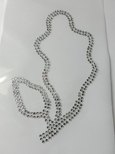 6. Ziehe Sie die Transferfolie vorsichtig ab, sollten Steinchen noch nicht verklebt sein, bitte Bügelvorgang wiederholen!
