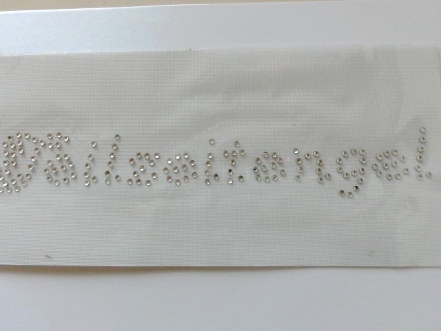 6. Ziehe Sie die Transferfolie vorsichtig ab, sollten Steinchen noch nicht verklebt sein, bitte Bügelvorgang wiederholen!