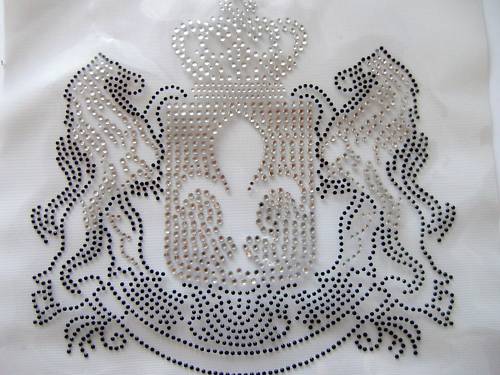 6. Ziehe Sie die Transferfolie vorsichtig ab, sollten Steinchen noch nicht verklebt sein, bitte Bügelvorgang wiederholen!