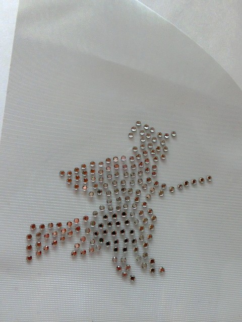 6. Ziehe Sie die Transferfolie vorsichtig ab, sollten Steinchen noch nicht verklebt sein, bitte Bügelvorgang wiederholen!