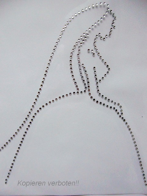 6. Ziehe Sie die Transferfolie vorsichtig ab, sollten Steinchen noch nicht verklebt sein, bitte Bügelvorgang wiederholen!