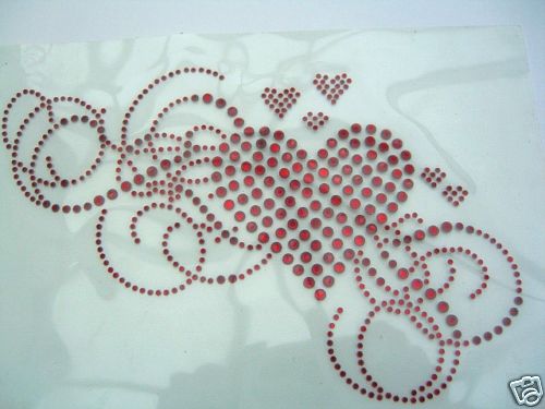 Romantisches Herz Ornament Rot Strass Bügelbild Hotfix Hotglue