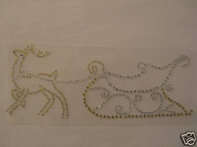 Hirsch Reh mit Schlitten Strass Bügelbild Hotfix Hotglue