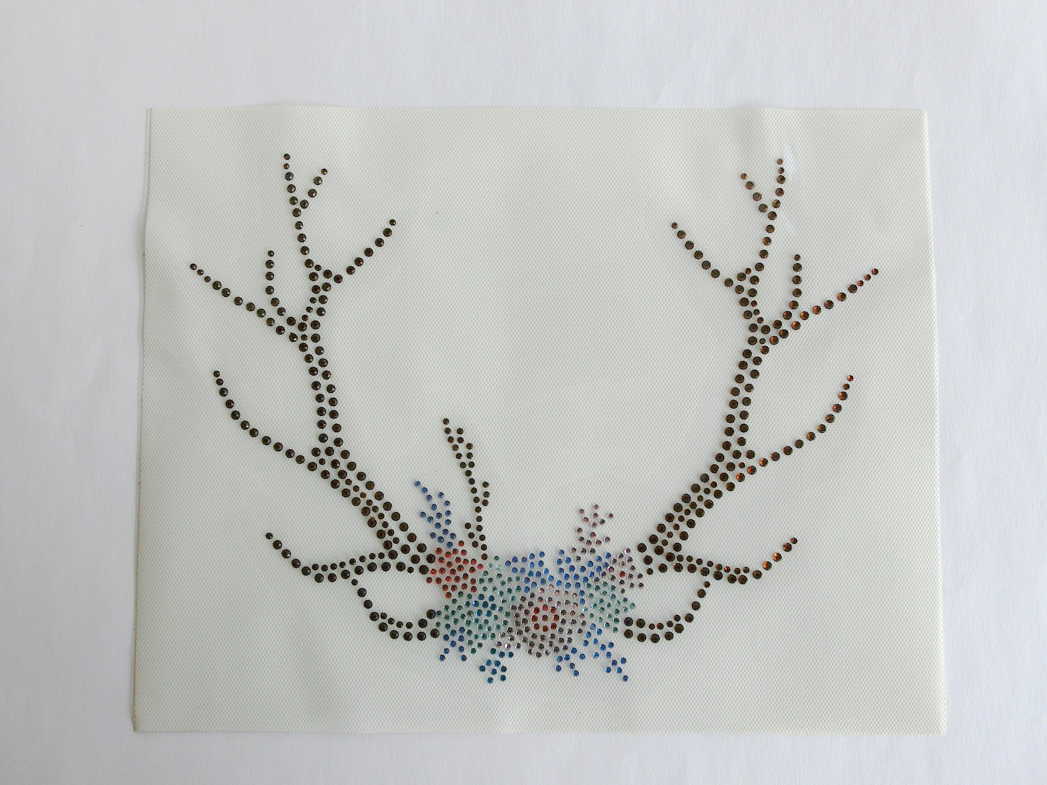 6. Ziehe Sie die Transferfolie vorsichtig ab, sollten Steinchen noch nicht verklebt sein, bitte Bügelvorgang wiederholen!