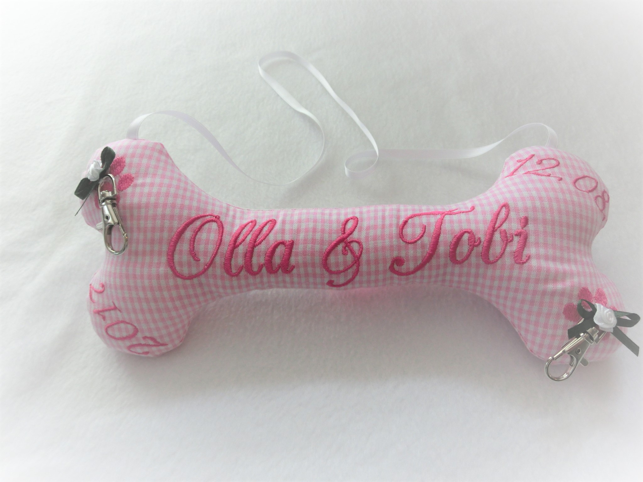 Hier erwerben Sie ein zauberhaftes Ringkissen in Knochenform aus hochwertigem Vichy Karo-Baumwollstoff. 28,0 x 12 cm Gern kann auch ein Satinband angenäht werden, damit der Hund den Knochen zum Altar bringen kann :-) Bitte nennen Sie mir nach dem Kauf Ihre Wunschnamen und Datum. Das Angebot beinhaltet: 1 x Knochen, 2 x Namen, 2 x Pfötchen 1 x Datum, 2 x Röschen, 2 x Karabiner 1 x Satinband 50cm lang Verfügbare Stoffe: Vichy-Karo ♥ rosa-Vichy ♥ flieder-Vichy ♥ rot-Vichy ♥ hellgrün-Vichy ♥ braun-Vichy ♥ hellgrau-Vichy ♥ türkis-Vichy ♥ hellblau-Vichy ♥ schwarz-Vichy ♥ beige-Vichy ♥ dunkelblau-Vichy ♥ gelb-Vichy ♥ orange- Vichy ♥ Pink- Vichy