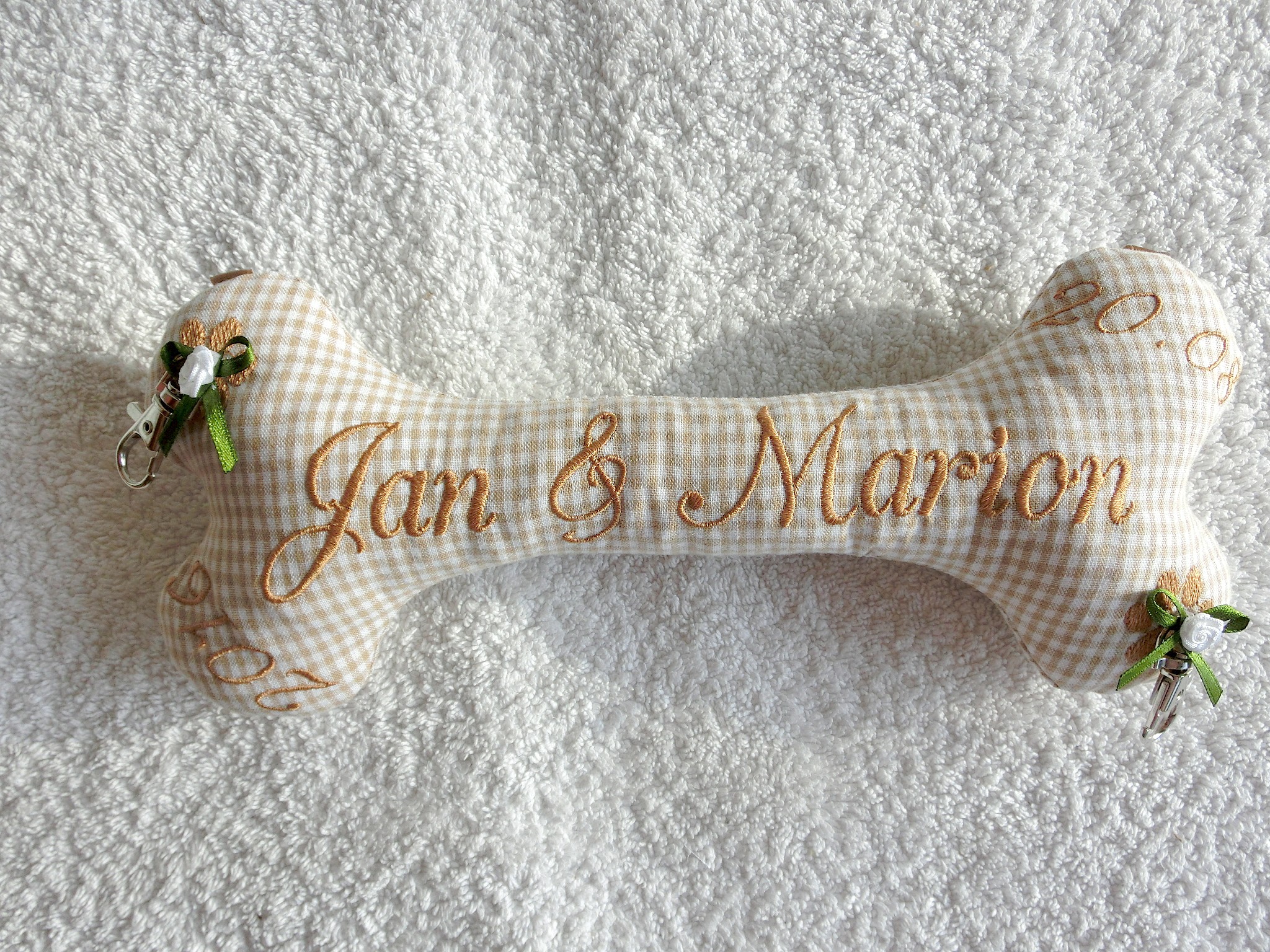 Hier erwerben Sie ein zauberhaftes Ringkissen in Knochenform aus hochwertigem Vichy Karo-Baumwollstoff. 28,0 x 12 cm Gern kann auch ein Satinband angenäht werden, damit der Hund den Knochen zum Altar bringen kann :-) Bitte nennen Sie mir nach dem Kauf Ihre Wunschnamen und Datum. Das Angebot beinhaltet: 1 x Knochen, 2 x Namen, 2 x Pfötchen 1 x Datum, 2 x Röschen, 2 x Karabiner 1 x Satinband 50cm lang Verfügbare Stoffe: Vichy-Karo ♥ rosa-Vichy ♥ flieder-Vichy ♥ rot-Vichy ♥ hellgrün-Vichy ♥ braun-Vichy ♥ hellgrau-Vichy ♥ türkis-Vichy ♥ hellblau-Vichy ♥ schwarz-Vichy ♥ beige-Vichy ♥ dunkelblau-Vichy ♥ gelb-Vichy ♥ orange- Vichy ♥ Pink- Vichy