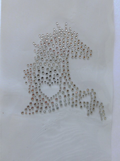 6. Ziehe Sie die Transferfolie vorsichtig ab, sollten Steinchen noch nicht verklebt sein, bitte Bügelvorgang wiederholen!